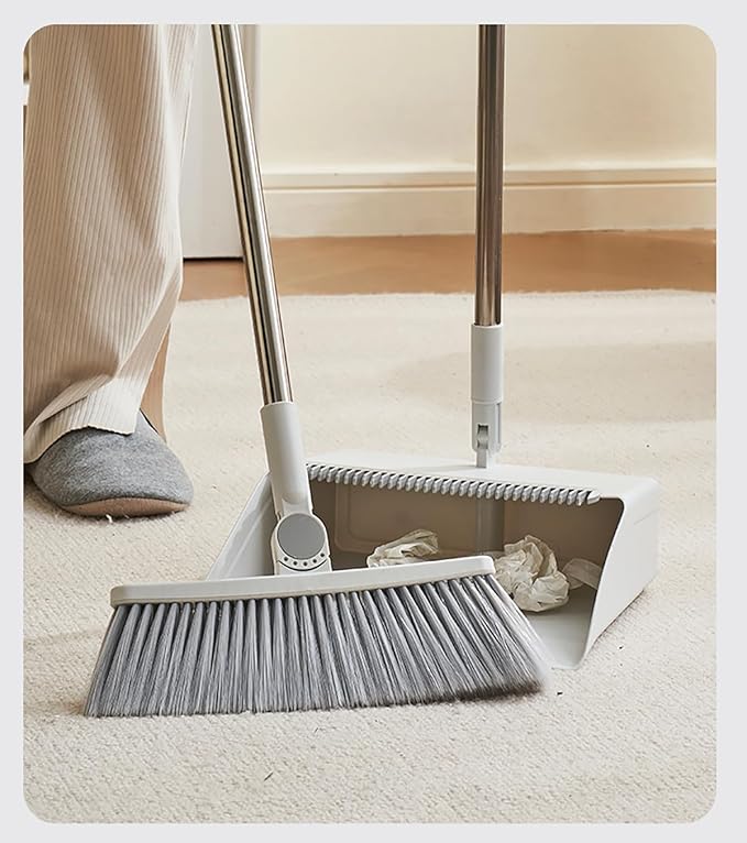 ほうきとちりとりのセットで暮らしを気楽に。使わない時に立ててスッキリ収納できる。