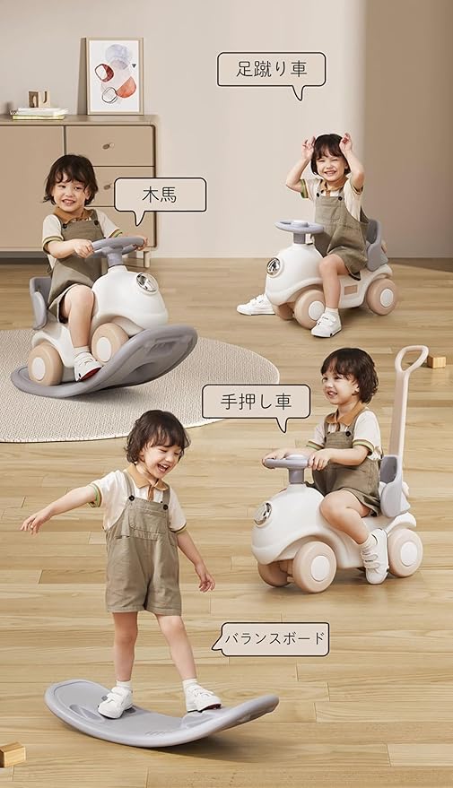 Gorocking 木馬 1-5歳子ども 乗り物おもちゃ 足蹴り車兼用 押し手付き 1台4役