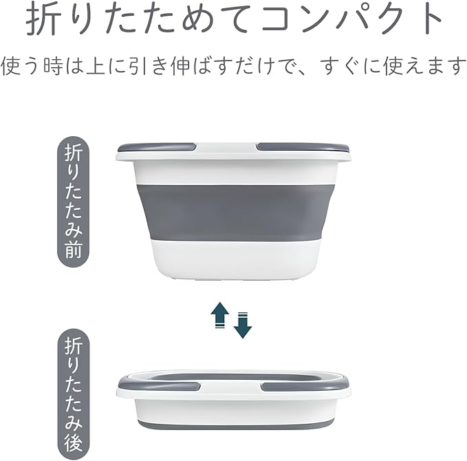 折りたたみ バケツ 16L/28L 大容量 おしゃれ キャンプ 洗濯 洗車 足湯 釣り (灰, 28L)