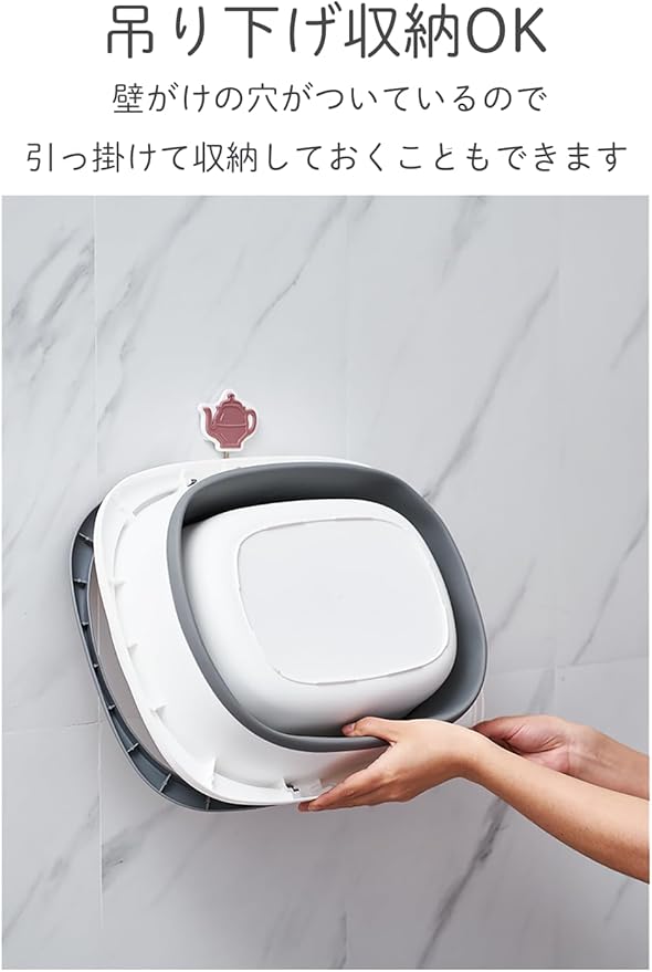 吊り下げ収納OK。壁がけの穴もついているので、引っ掛けて収納しておくこともできます。隙間スペースにもきっちり収納。