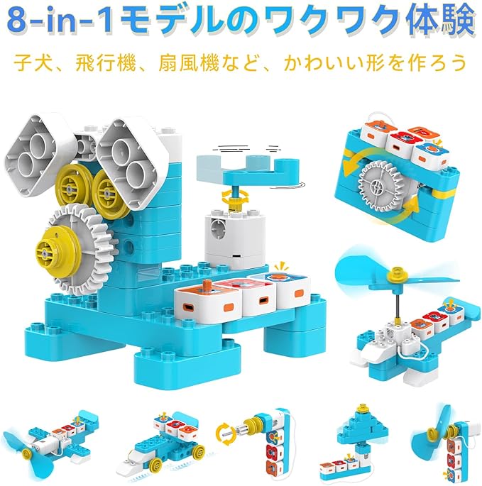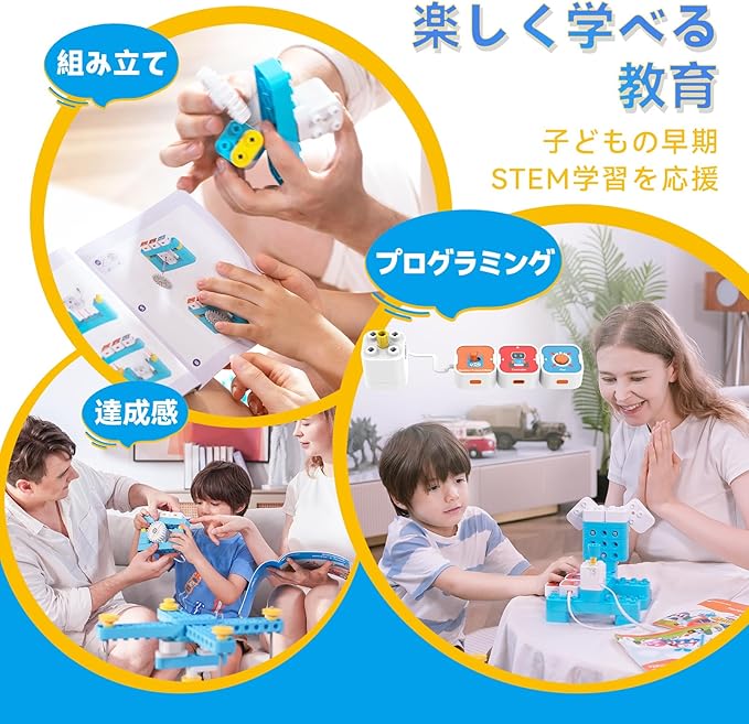 【遊びながら学べるSTEM教育玩具】組み立て・ストーリー・プログラミングがひとつになったSTEM玩具で、遊びの中で科学・技術・工学・数学の基礎を楽しく学べます。問題解決力、論理的思考力、創造力を育むのにぴったりの知育トイです。
