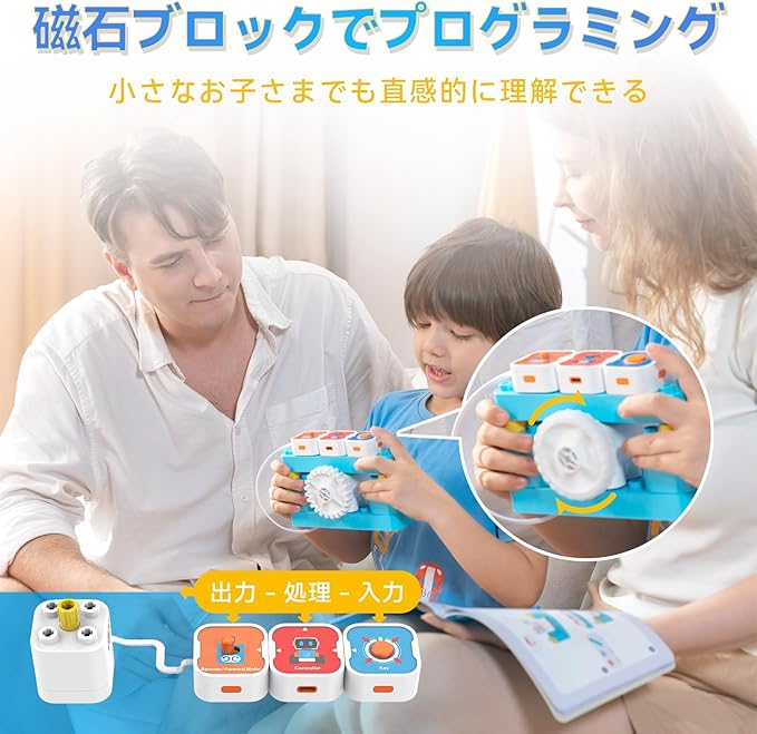 【3~6歳向けに最適な設計】未就学児や小学校低学年のお子さまにぴったりのプログラミング入門トイです。プログラミングはわかりやすいマグネット式プログラミングブロックを使って行うため、小さなお子さまでも直感的に理解できます。試行錯誤を繰り返しながら、自分で考える力を育て、楽しみながら論理的思考力を身につけることができます。