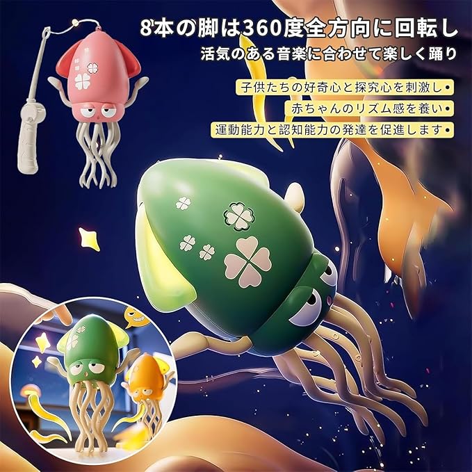 【音楽タコのおもちゃ】超クールなセンサー障害物回避機能、移動中に障害物に遭遇すると、時間内に逆方向に移動します。このインタラクティブな音楽玩具は、お子様のハイハイを促すだけでなく、運動能力や手と目の協調性を養うのにも役立ちます。対象年齢:6歳以上。