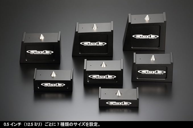 ハイエースをロ-ダウンする際に必要となるダウンブロックを多機能化することで、従来製品では補えなかった欠点を完全に克服しました。ブロック本体には、軽量かつ剛性に優れたA6061アルミ押出材を使用し、高精度の切削加工を施したのち、ショットブラストとブラックアルマイト処理で仕上げました。また、あらたな機能として、センターピンを円錐形状とした「フィッティングコーン」を採用。強烈な保持力を誇る“サーフェスロックUボルト"との組み合わせによる完璧なフィッティングを実現しました。さらに、前後方向のズレが原因で起こるアクスルハウジングの振れ(スラスト角)を抑制する「アクスルガイド」が、いかなる路面状況でも安定した直進性をサポートします。ほかにも、オフセットしたアクスルを車体のセンターへ調整し、絶妙なツラ位置セッティングを可能にする「センタリング機能」など、多彩なスペックを誇ります。ダウン量は0.5インチ(12.5ミリ)ごとに7種類のサイズを設定し、希望の車高へ確実にセットアップすることができます。