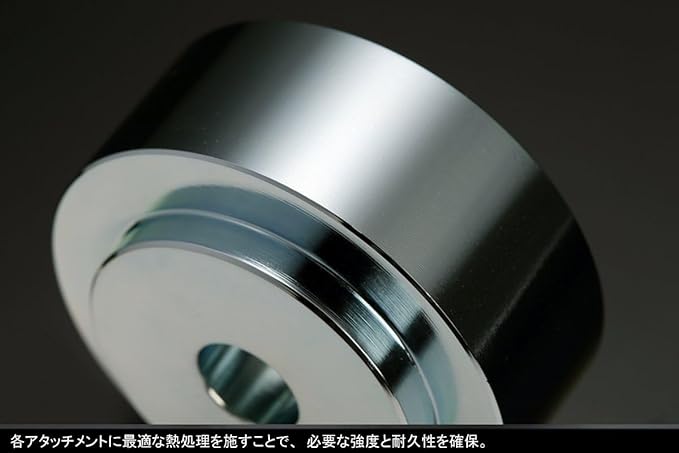 ブッシュを交換するうえでなくてはならない機材といえば、大抵の人が油圧プレスを想像するでしょう。キツく圧入されたブッシュを抜き取り、あらたなブッシュと交換するために必要な設備ですが、整備工場以外で見かけることはごくまれです。また、油圧プレスにセットするには車体からアームを取り外さなければならず、整備工場へ依頼するにしても面倒な作業であることに変わりありません。そこで、これまでの非効率で煩わしい作業を一変させる、サスペンションブッシュ専用SSTを開発しました。“イージーエクスチェンジツール"は、異なる形状のアタッチメントを組み合わせるだけで、抜き取りから圧入までの一連の作業をハンドツールのみで完了できる優れモノです。これさえあれば、プロのメカニックはもちろん、DIYユーザーでも気軽にブッシュ交換にチャレンジできます。