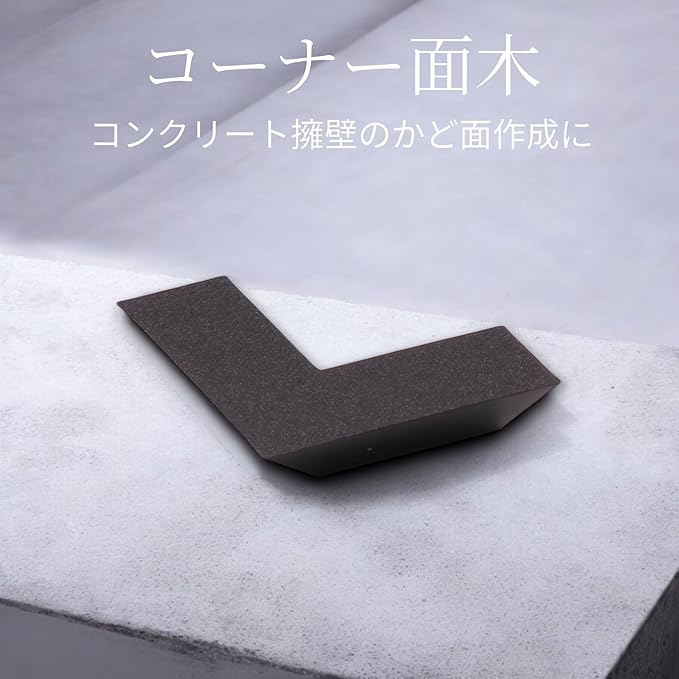 「コーナー面木 L2B Plus」は、従来の面木でのコーナー処理の手間を大幅に軽減し、生産性を向上させる革新的なコーナー専用の面木です。コーナー部分を簡単かつ美しく仕上げることで、現場作業の時間と手間を削減し、コスト面にも配慮しています。 この製品をを使えば、現場の作業者にとっては手間が省け、管理者にとってはコスト削減というメリットが得られ、さらに生産性の向上に寄与します。プロフェッショナルな仕上がりを短時間で実現する必需品です。