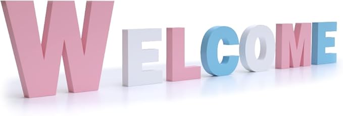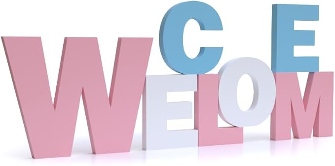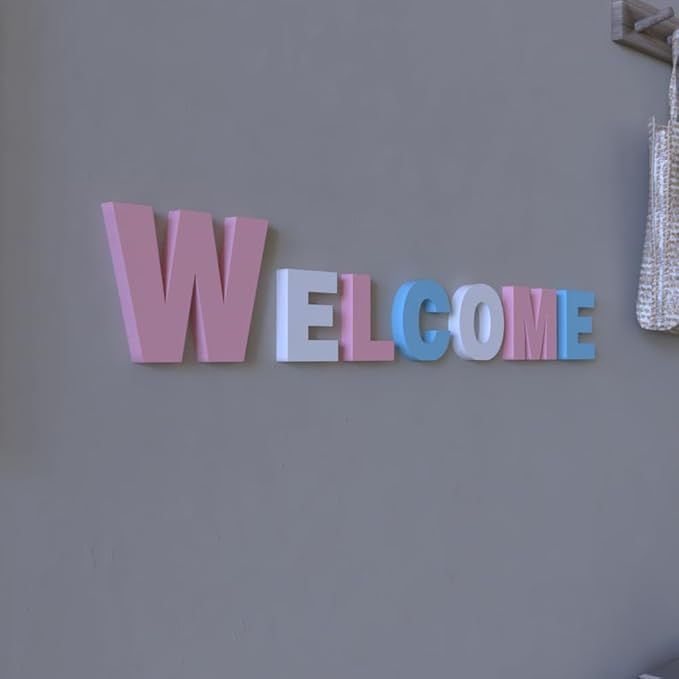 WELCOME PVC製 モダンシンプル ウェルカムレターオブジェ 玄関デコレーション パーティーアクセント ピンクブルーホワイト インテリア飾り 英語文字オブジェ ホームデコ ギフトアイデア