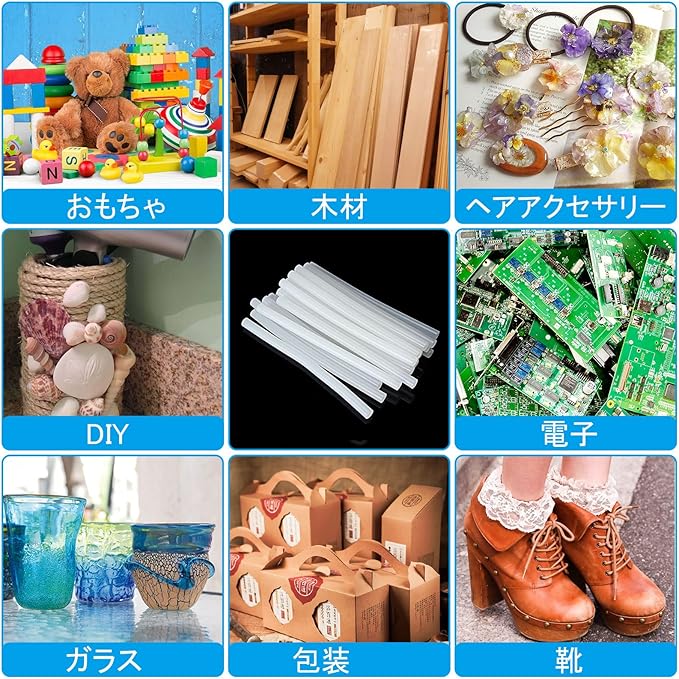 強力な粘着性:EVA樹脂のため、粘着力が強く、伸縮性もあります。 紙、プラスチック、木材、布、靴などに接着できます。