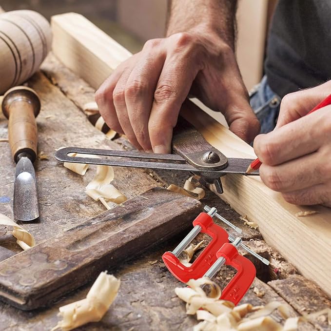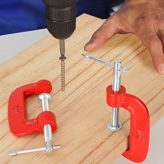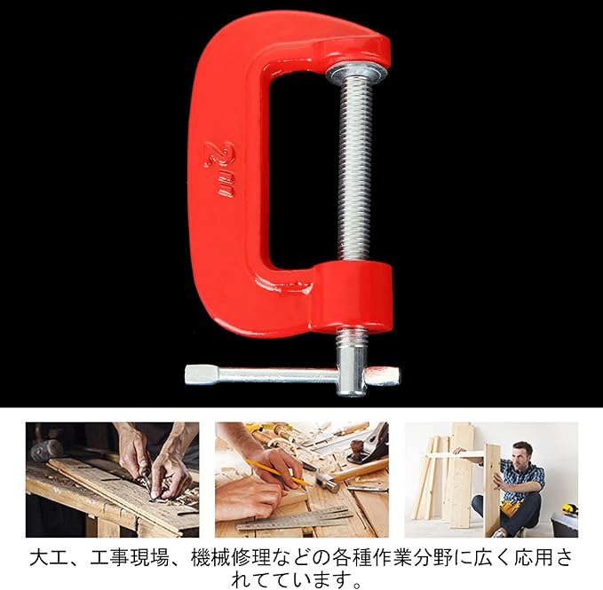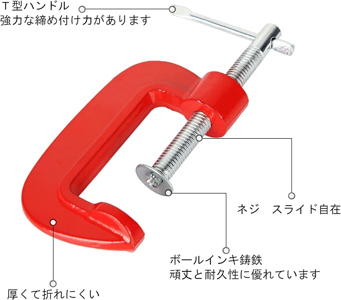 Cクランプ 16個入れ C型クランプ 木工 深型 固定 2インチ最大開口約50mm G型クランプ 万力 ボールインキ鋼製 鋳鉄 DIY工具 木工用 接着 固定 溶接 作業 切削 締付 レッド
