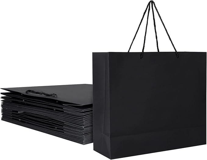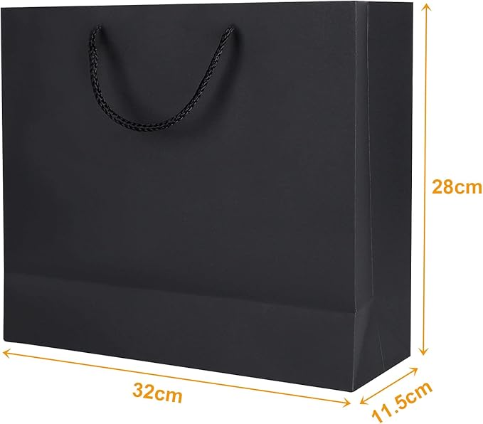 RILIHII 【20枚セット】ギフトバッグ 手提げ袋 引き出物袋 黒ギフトバッグ 厚手の無地紙袋 ラッピング袋 水平型 32x28x11.5cm 大