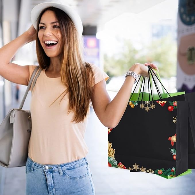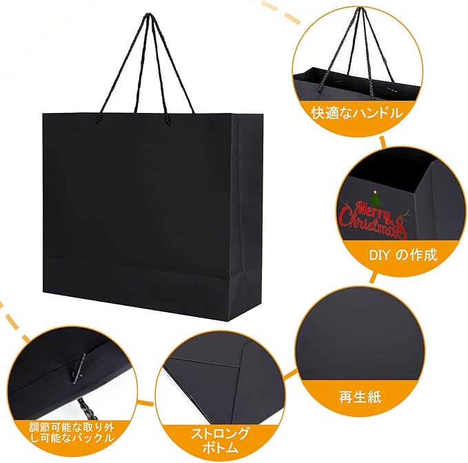 【大きな価値】:高品質の厚紙、これらのバッグを何度も再利用できることを保証し、ギフト包装プロセスを簡素化します。ギフトをバッグに入れて、お好みに合わせて飾ってください。これらのバッグは、休日、誕生日、手提げ袋、ブティックバッグ、ギフトバッグなど、さまざまな場面で使用できます。