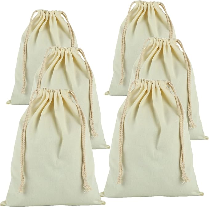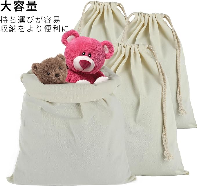 RILIHII 【6枚】キャンバス巾着袋30x40cm 大 無地 小物入れ 旅行収納 引き紐バッグ 引きひも袋 収納ポーチ アクセサリーポーチ 雑貨 ギフト用 手軽 持ち運びに便利 旅行お祭りラッピング用品 万能