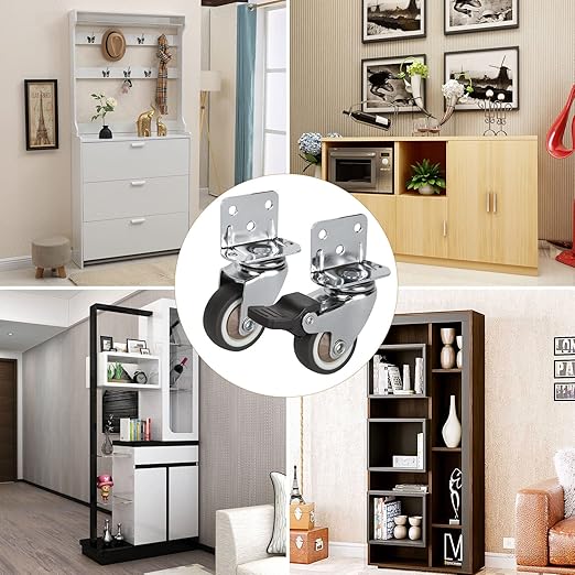 様々なシーン:L形キャスターは、ワゴンやキャビネット、テーブルやテレビ台、棚やオフィスチェア、コーヒーテーブル、植物棚、、シューズキャビネット、おもちゃ箱、ショッピングカート、作業台などにご使用いただけます。