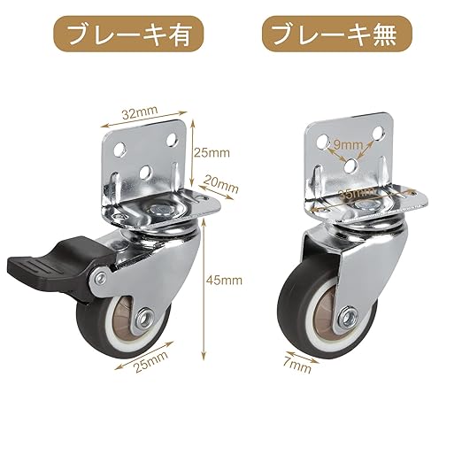 個数:8個セット(ブレーキ有4個+ブレーキ無4個)