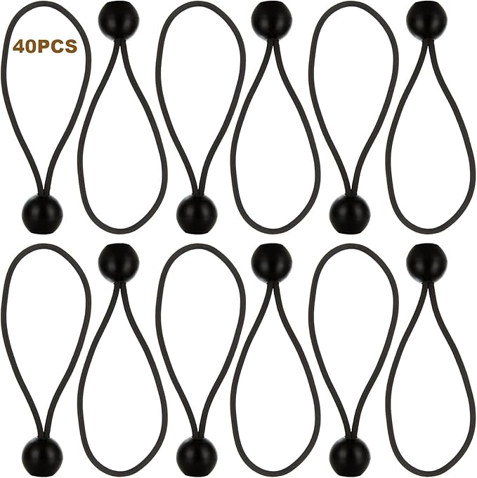 バンジーコード ボールプラグゴム【40個】ゴムテント固定ロープキャンプ 用品車用品バイク 家庭用品に適している(黒線直径4mm、長さ15cm、ボールヘッド直径2.7cm)