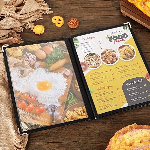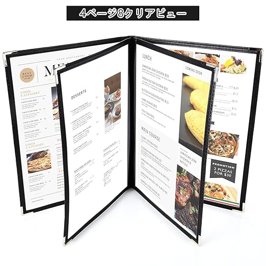 メニューブック 8ページ 【5冊セット】メニュー表 A4 (4枚8面) 透明 料理写真入り 保護 汚れ防止 内ページサイズ21x29.7CM