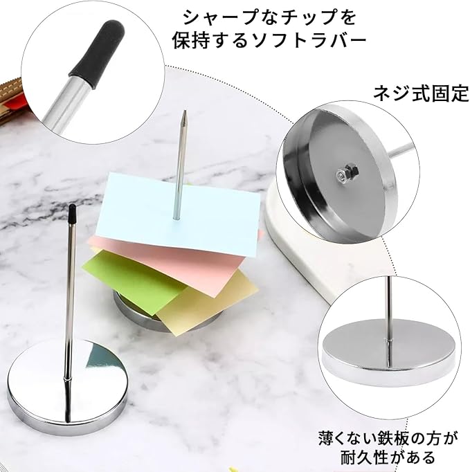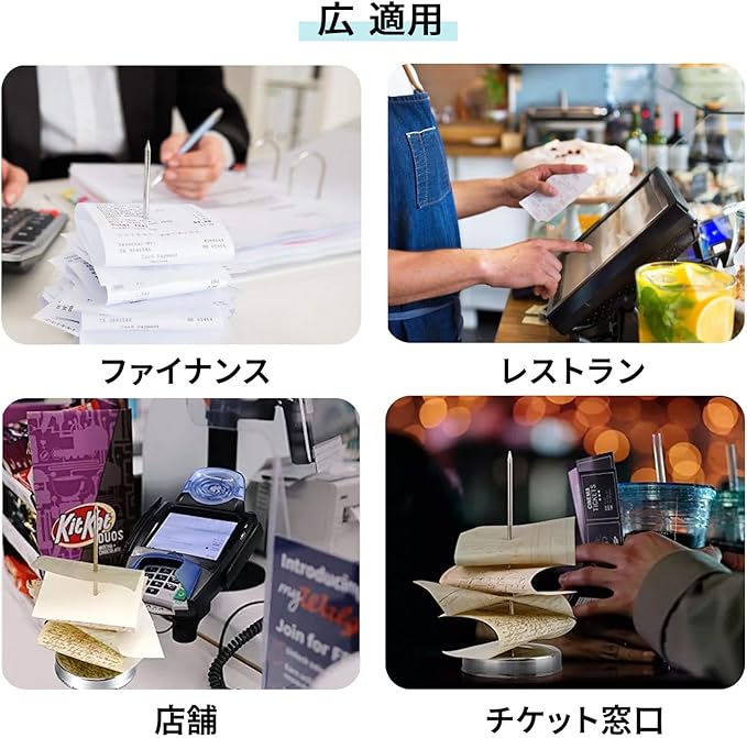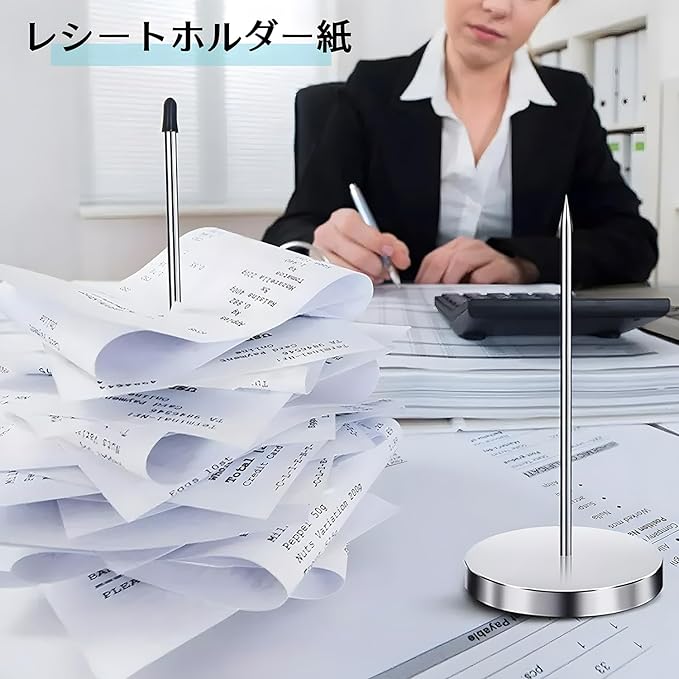 【安全設計】柔らかシリコンカバーで、急いでいても指先を保護。慌ただしい業務中でも安心してお使いいただけます。書類やメモ、レシート類を針に差し込むだけで簡単整理。多忙な時でもスムーズに書類処理が完了します。