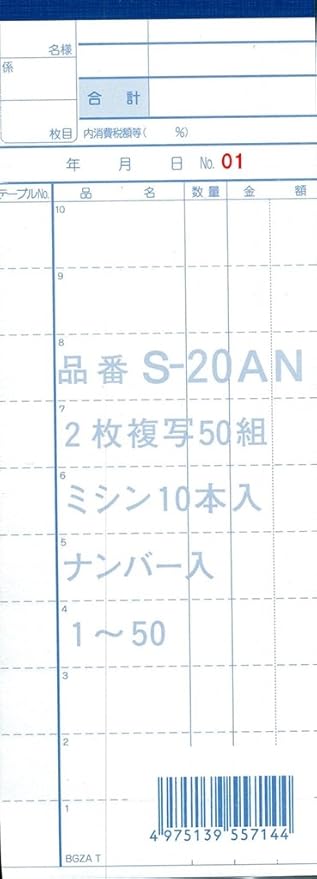 会計伝票s-20AN 2枚複写50組 01-50ナンバリング入 10冊セット