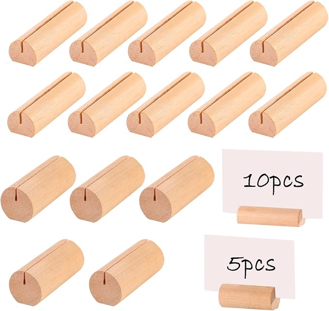 CINECE メモクリップ ホルダー スタンド 木製 12個+12枚名刺 写真 カード 立て 名刺 便箋 文具 事務 シンプル (円柱形 2サイズ)
