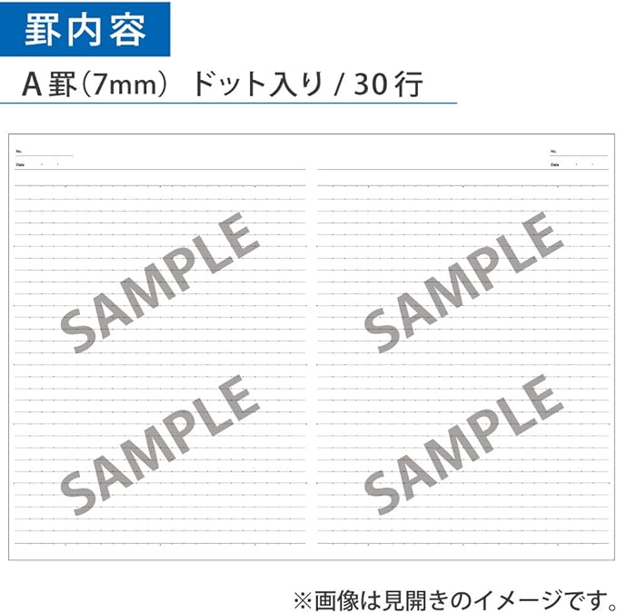 【罫内容】普通横罫ドット入り(7mm)/30行 【枚数】 30枚 5冊