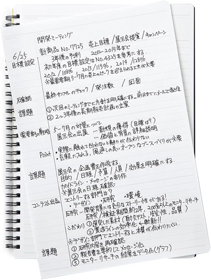 折り返して使えるツインワイヤ製本とアイディアを残す切り取りミシン目入り