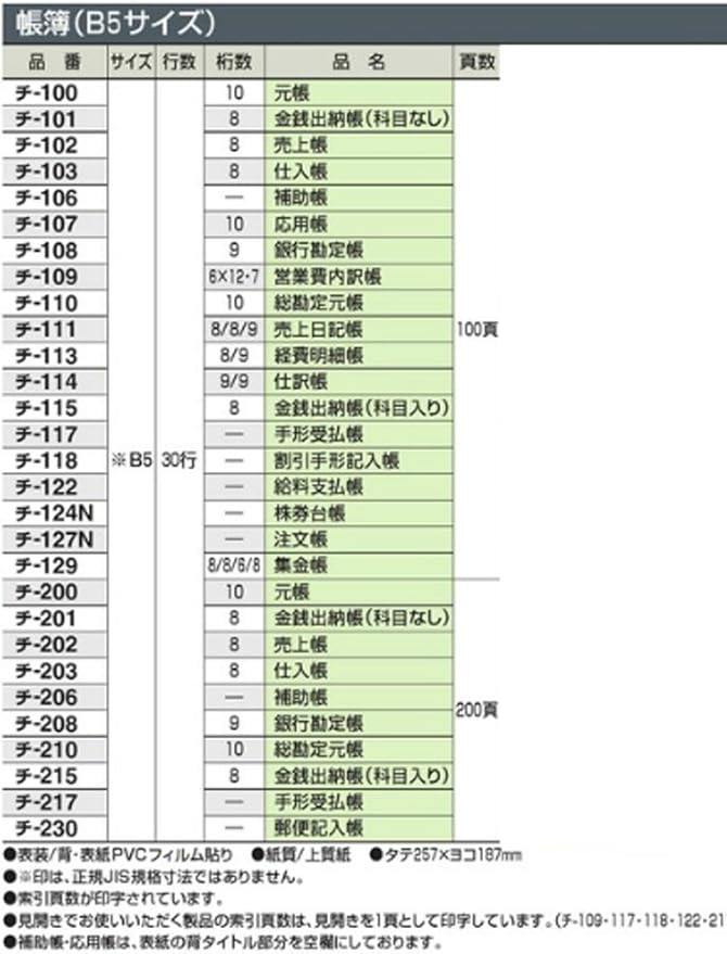 ●B5サイズ相当の帳簿「金銭出納帳(科目入り)」です。