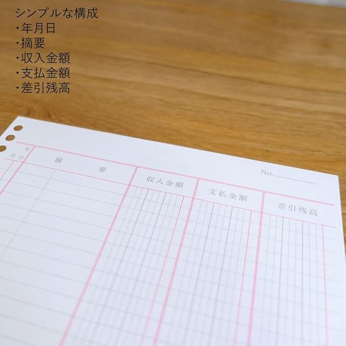 とってもシンプルな金銭出納帳です。 穴が開いてるのでファイルに収納しやすいです!