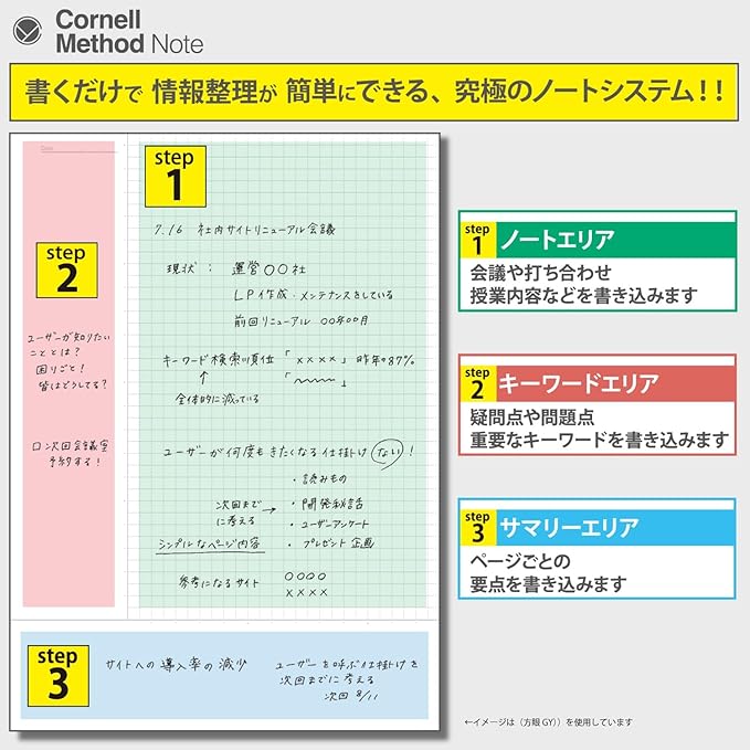 アメリカの名門「コーネル大学」で開発され、多くの情報を整理し、身につけるために考えられたノートシステムを採用しています。