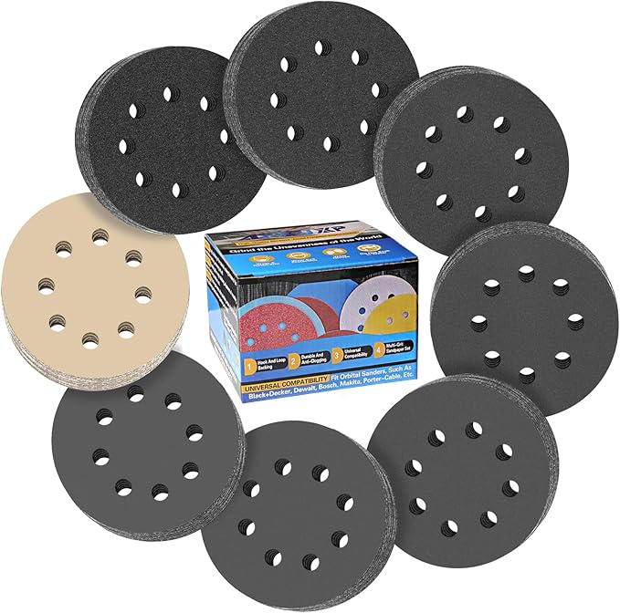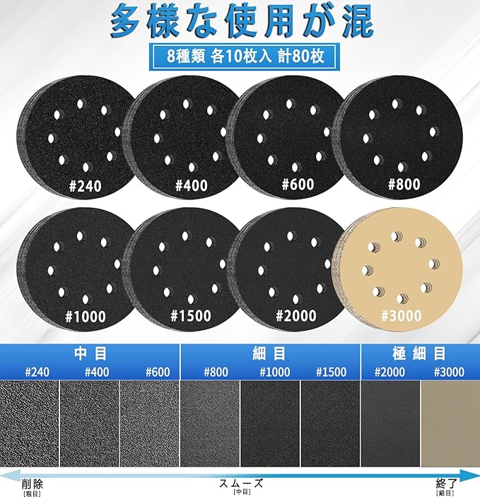 【使いやすいマジックテープ式】簡単に吸着が良い で外れることはありませんし、高速で耐久性のあるサンディングを提供することで、作業時間を節約し、集塵用に8つの穴を事前に打ち抜きます 穴の位置も正確でした目詰まりの心配はありません.一枚ずつ番手が裏に印字してあり-区別しやすい