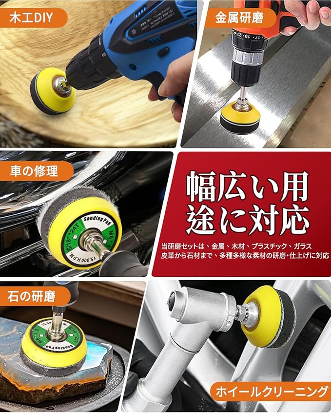 【幅広い用途に対応】当研磨セットは、金属、木材、プラスチック、ガラス、皮革から石材まで、多種多様な素材の研磨・仕上げに対応;DIY工作や家庭のプロジェクトはもちろん、木材彫刻から頑固なさびや塗装の除去まで、あらゆる表面処理を効率的に完了できます。プロも認める切削能力で、研削効率がアップします