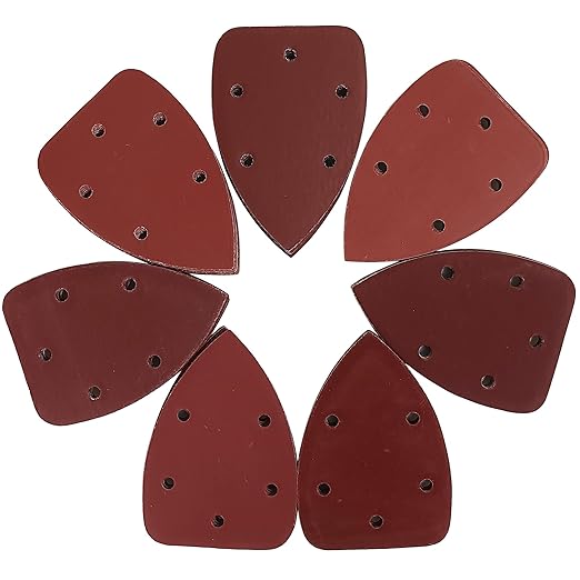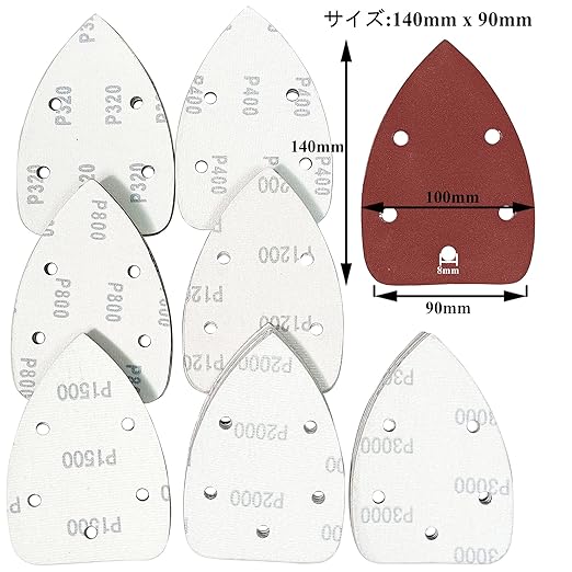 70枚 #320 - #3000 サンドペーパー 三角形 5穴あき サンディングディスク サンダー用紙 7粒度(320/400/800/1200/1500/2000/3000 各10枚)塗装面の研磨、金属表面の錆取り 研磨、木工用 研磨 紙やすり (7粒度 合計70枚 #320-#3000 赤色)