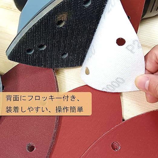 ►【背面フランネルタイプ】背面は高品質なフランネル材質を採用しております。粘着性が優れて、とても便利に取り外しや交換することができます。異なる研削ニーズに従って砂の異なるカテゴリーが素早く変えることができ、操作が簡単です。