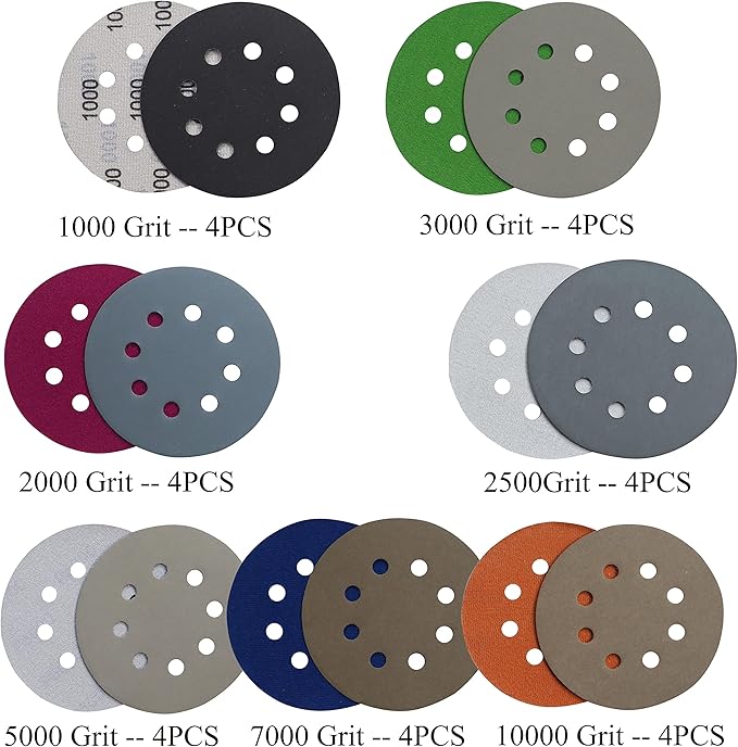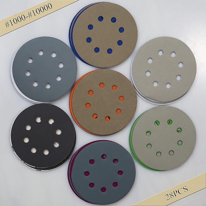 28枚 125mm耐水 サンドペーパー #1000 - #10000 丸型 8穴あき サンダー用 鏡面磨き 紙やすり 1000 2000 2500 3000 5000 7000 10000 各4枚 (28枚セット 7タイプ 各4枚 #1000 - #10000)