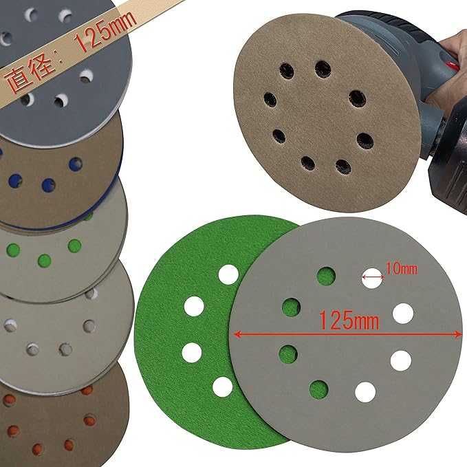 【取り換えが簡単】 直径125mm/8穴タイプのペーパーに対応。粘着性が優れて、とても便利に取り外しや交換することができます。異なる研削ニーズに従って砂の異なるカテゴリーが素早く変えることができ、操作が簡単です。