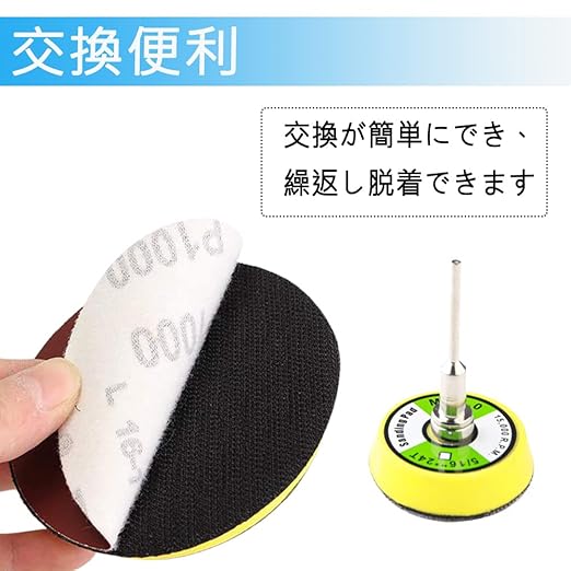 【簡単な取り付け】サンディングパッドの裏面は粘着力が強く、サンドペーパーを簡単に取り外して取り付けられるので、操作簡単。