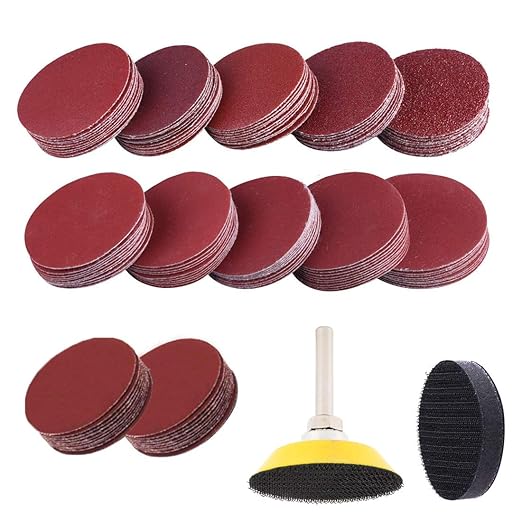 120枚 サンドペーパー 12タイプ サンディングペーパー サンディングパット 金属表面の錆取り、塗装面の研磨、木工生地研磨などに 電動サンダー用 50mm(#60/#80/#120/#180/#240/#400/#600/#800/#1000/#1200/#1500/#2000 丸型 各10枚)