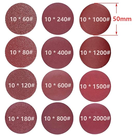 サイズ:直径50mm、丸型。種類:60/80/120/180/240/400/600/800/1000/1200/1500/2000目グリット各10枚!120枚セット