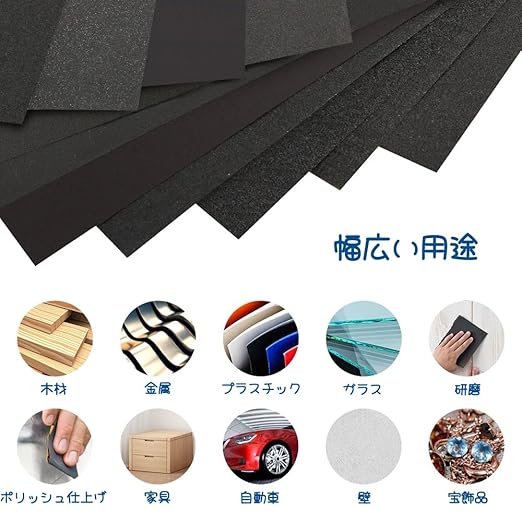 【この超ファインカット防水サンドペーパーシートは、あらゆる表面のサンディングと研磨に最適です。また、木工、工業用金属加工、ガラス繊維、プラスチック研磨など、サンディングが必要なあらゆる面に使用できます。