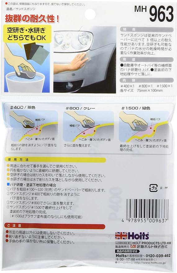 ホルツ 補修用品 研磨用スポンジ サンドスポンジ シートタイプ Holts MH963 #400 #800 #1500 3枚セット