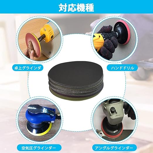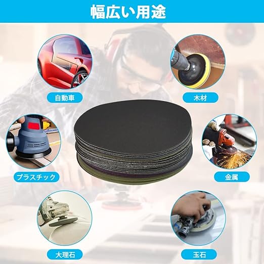 【幅広い用途】:#400は荒研ぎ、#800-1200は仕上げ研ぎ、#2000-3000は研磨。用途によって使い分けます。金属、非金属製品、塗装面研削、木材、プラスチック、自動車製造、自動車修理、大理石、磁器、玉石および手工芸品研削など幅広く使用されています。