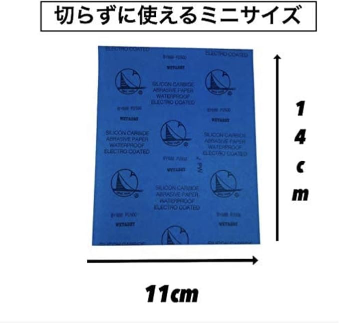 使いやすいミニサイズ(14cm 11cm)ですので切らずにそのままご使用になれます。水に濡らした状態と乾いた状態の両方の使用に適しておりきれいに仕上がります。2500番 4枚 3000番 4枚 5000番 4枚 合計12枚入り