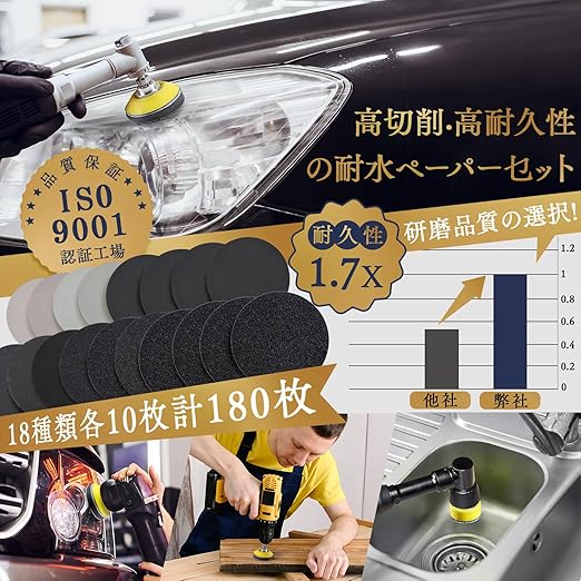 【高品質の素材】高級なラテックス紙を採用し、研磨する時に乾いても濡れても使えますので、工芸美術、木材、塗装表面、ガラス繊維、自転車、バイク、金属、ジュエリー、自動車、鏡面、プラスチック、プラモデルなどに応用することができます。
