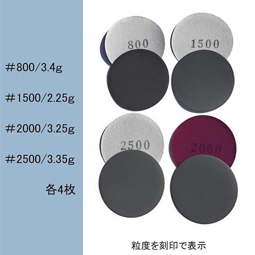 【ASPALAND】 耐水 ペーパー サンドペーパー 丸型 サンダー用 紙 やすり 鏡面磨き 125mm セット (各4枚 800 1500 2000 2500)