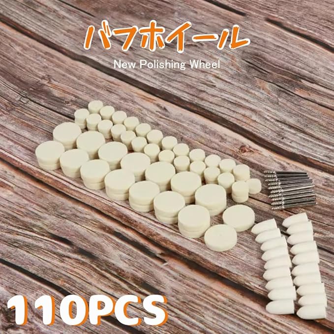 ポリッシャー バフ フェルトバフ 110個セット 様々な回転工具に適した多機能研磨ホイール
