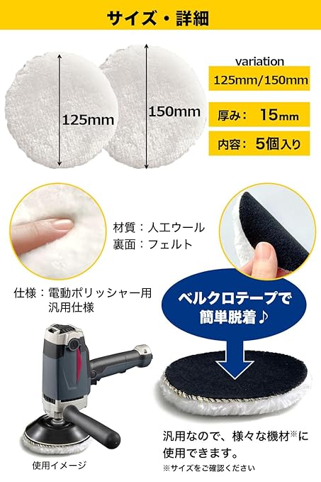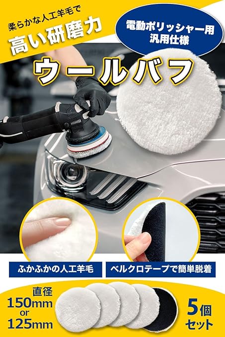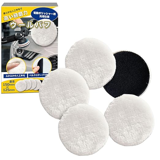 [E-enemo] ウールバフ 羊毛バフ 【整備士監修】 5個セットx研磨や仕上げ用に フェルトバフ (125mm)