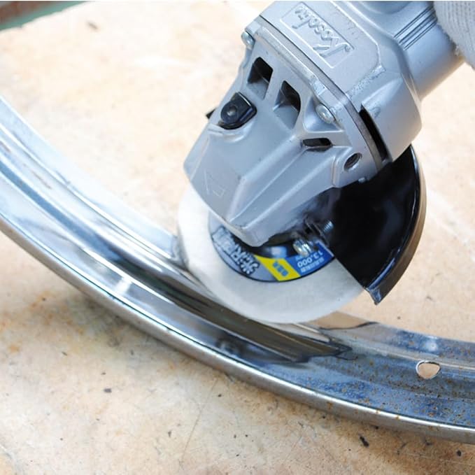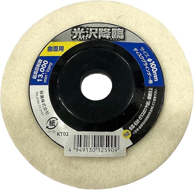 金属・石材・ガラスの曲面・コーナー部分のツヤ出しや鏡面仕上げにご利用いただくディスクグラインダー用のフェルトディスクです。