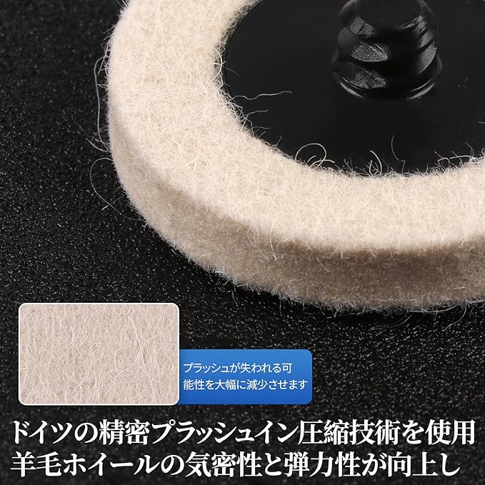 【プロフェッショナルグレードのHOT】:ドイツの精密プラッシュイン圧縮技術を使用、これにより、羊毛ホイールの気密性と弾力性が向上し、過剰な圧力をかけても羊毛が大量に飛び散る心配がありません、高品質なフェルト研磨パッドは優れた耐久性と性能を提供します、早く磨けました、使った後は水洗いして何回も使用できる
