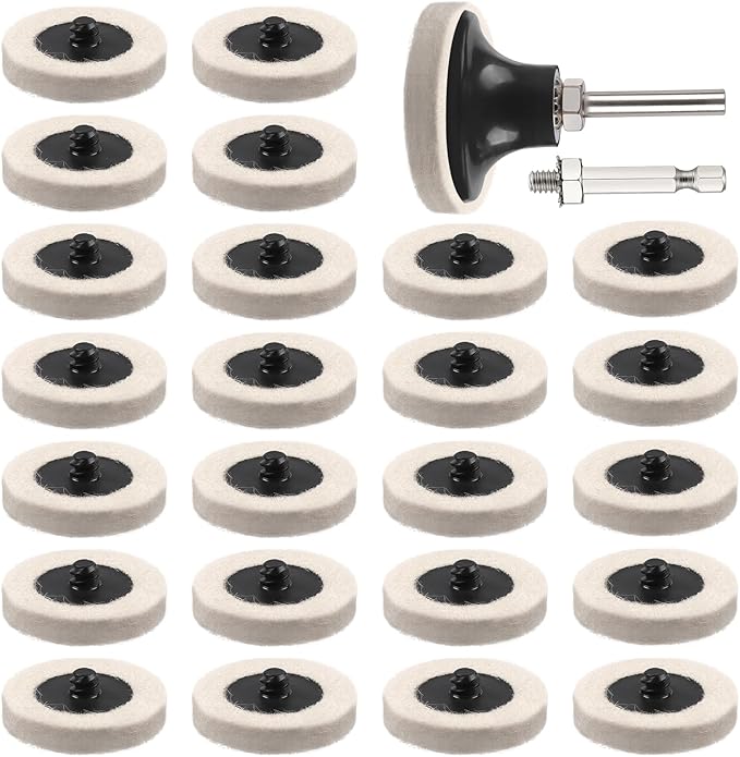 フェルトバフ 50mm ポリッシャー バフ 羊毛 フェルトバフ 車 ガラス研磨用バフ フェルトホイール 電動ドリルに使用(25個セット)
