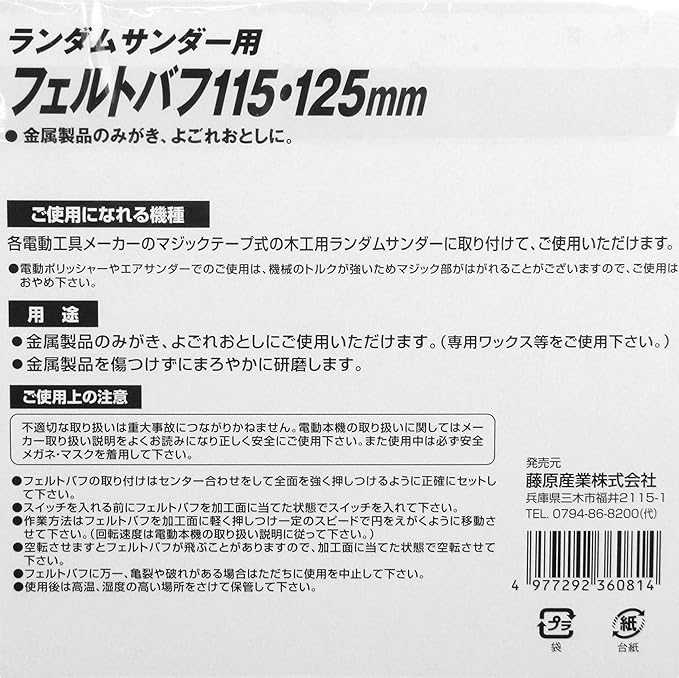 特徴1:最終ツヤ出し加工に便利な、ランダムサンダー用フェルトバフ