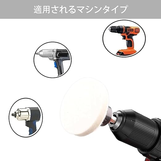 自動車ビューティー:電動ポリッシャーとの相性抜群!ウールバフは、その柔らかな質感と優れた耐久性により、車のボディに均一で効果的な研磨を施すことができます。ポリッシャーによってバフが回転することで、傷やスクラッチを除去し、美しい光沢を引き出します